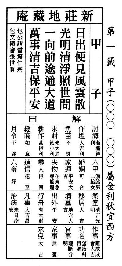 抽得此籤表示所問之事目前面臨著阻礙與困難,但是就像雲會散開,陽光會出來,事情的陰霾會掃去,而且神明會保佑,事情最後會平安順利的。