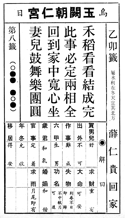 「妻兒鼓舞樂團圓」 籤詩靈驗