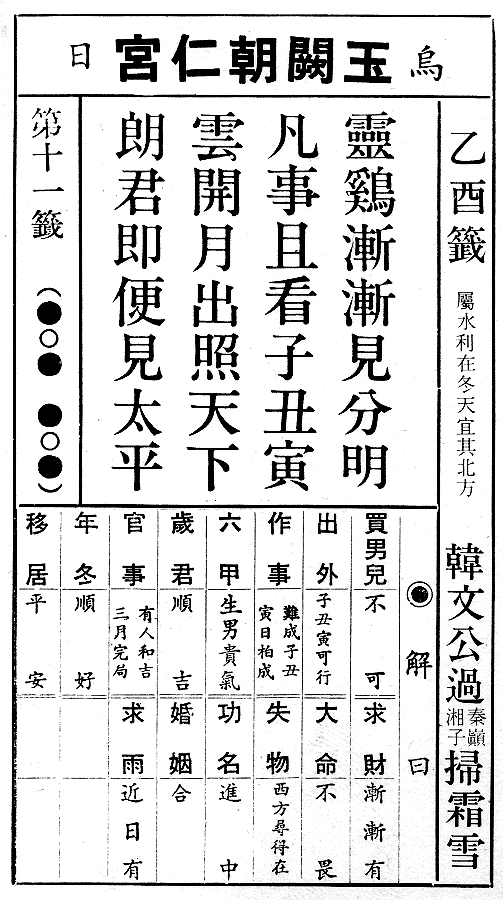 六十甲子籤 第十一籤 乙酉
