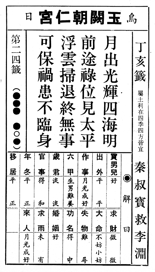 若問時機為「月出」,指農曆十五或中秋。但也可朝向遇女性貴人困難得解的方向思考。
