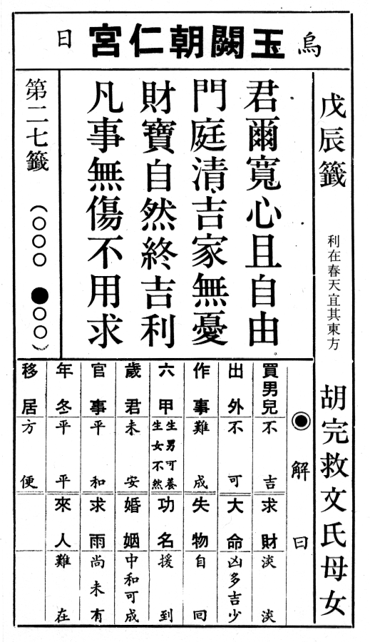 六十甲子籤 第二十七籤 戊辰