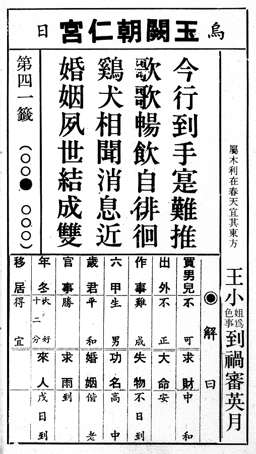 六十甲子籤 四十一籤 庚申