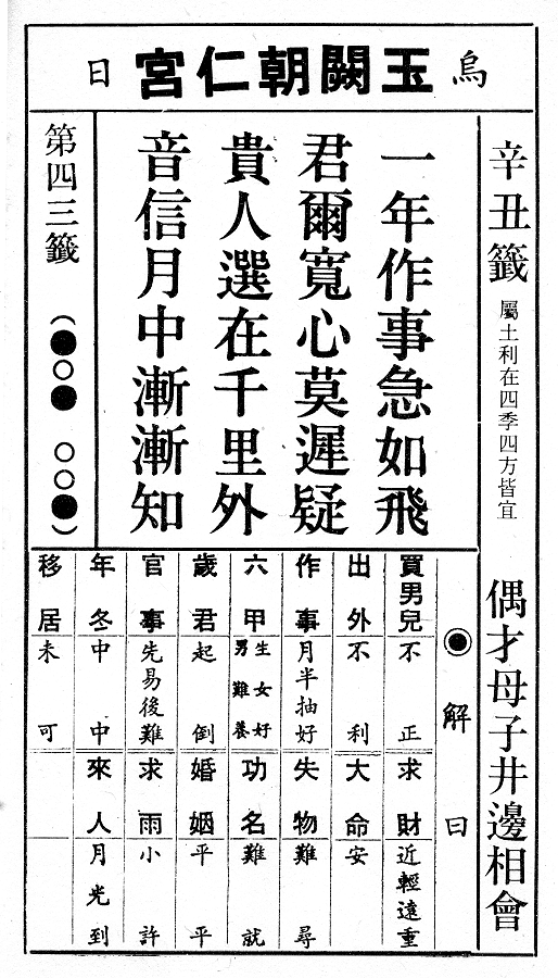 這首籤詩表示自己發揮的時機未到,就算著急也沒有用,當靜心等待時機與貴人的幫忙。