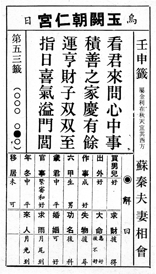 六十甲子籤 第五十三籤 壬申