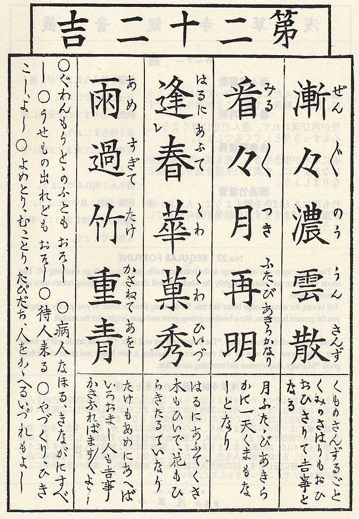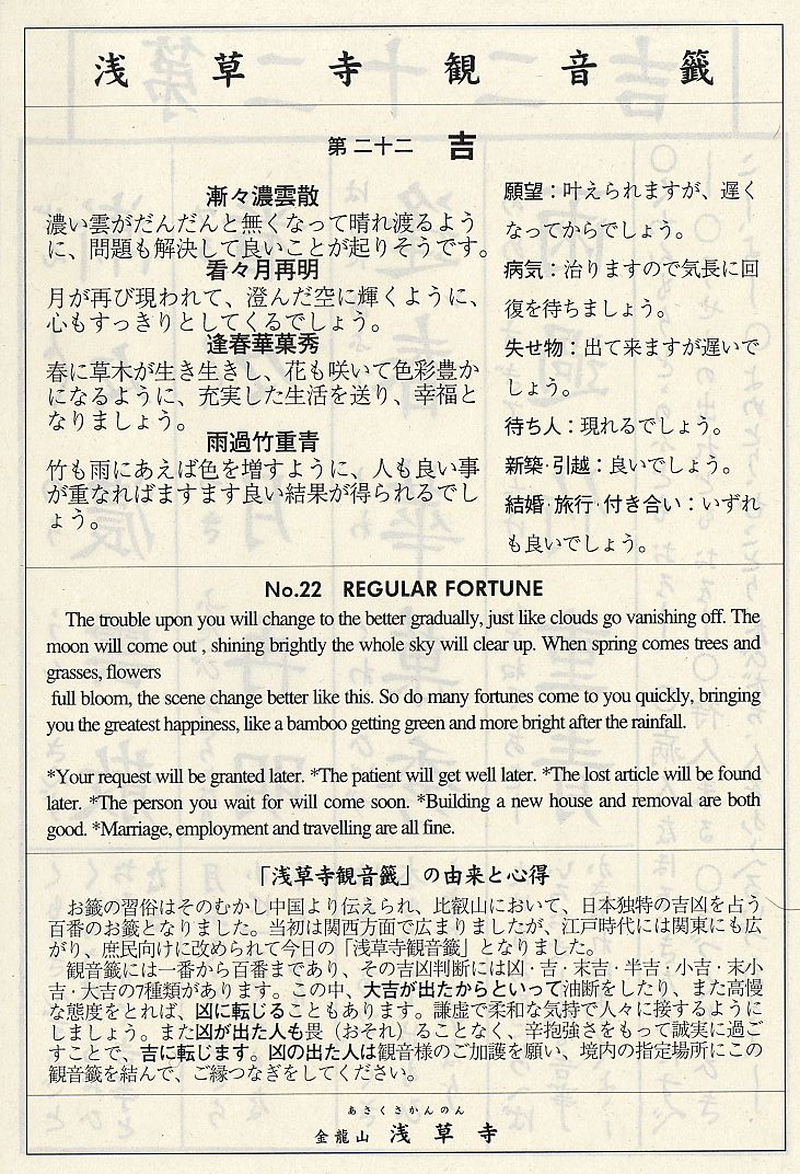日文漢字籤詩及語譯詳見 http://www.aa.alpha-net.ne.jp/sojun/CI11.htm