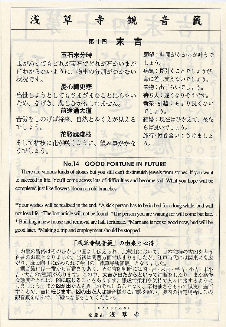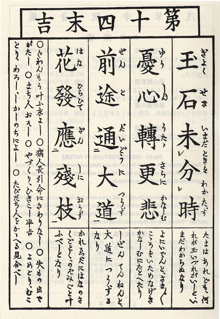 日文漢字籤詩及語譯詳見 http://www.aa.alpha-net.ne.jp/sojun/CI11.htm